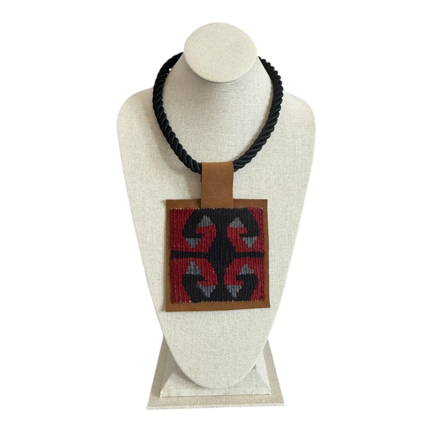 Kilim Pendant - Black Silk Rope Necklace