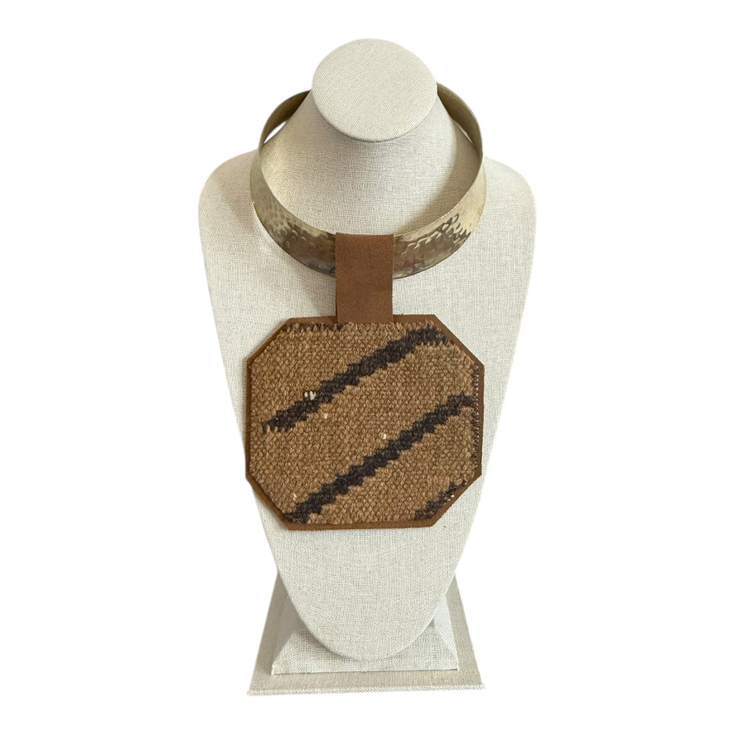 Vintage kilim meets bold style. Every pendant is stitched with care, backed in suede, and totally one-of-a-kind — little frays and color quirks included. Wear with care!