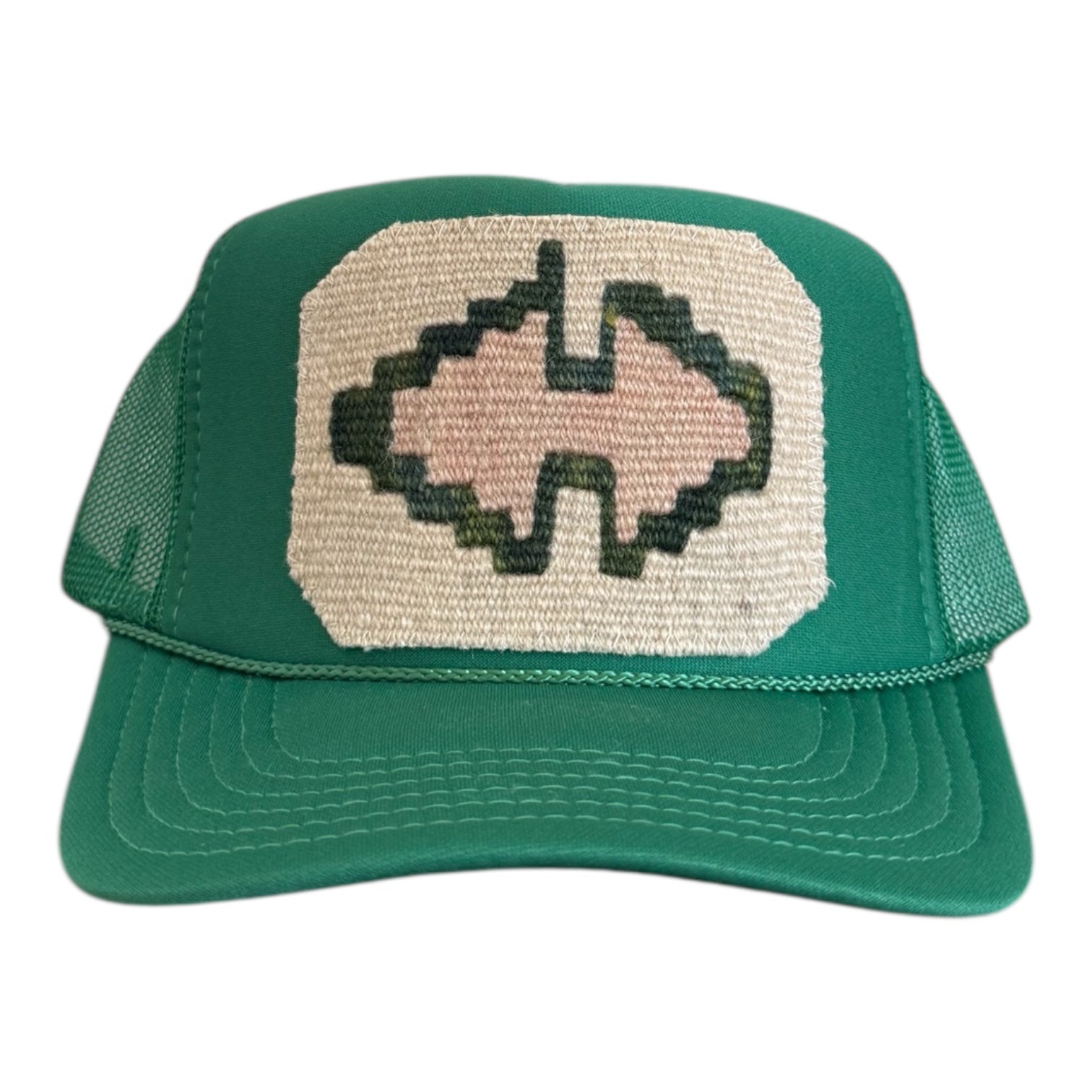 One-of-a-kind trucker hat with a bold kilim patch—no two are ever alike!